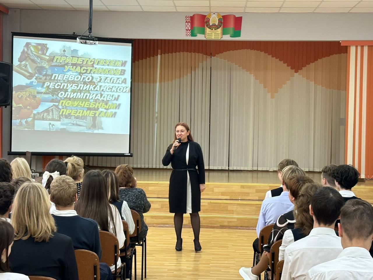 На церемонии открытия школьного этапа олимпиады в адрес всех участников звучат напутствия от директора школы, педагогов-председателей жюри,членов оргкомитета!! Олимпиада по учебным предметам — важный и захватывающий этап школьной жизни!! Своими эмоциями и практическими советами поделились победители республиканского этапа — Лазаренко Егор и Марцинкевич Геннадий!! О своих ожиданиях от новых предметных испытаний рассказали ребята — победители городского и областного этапов!