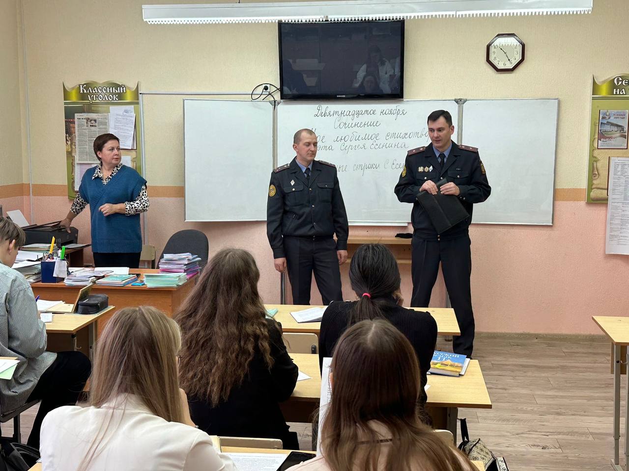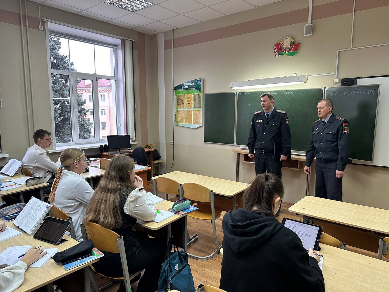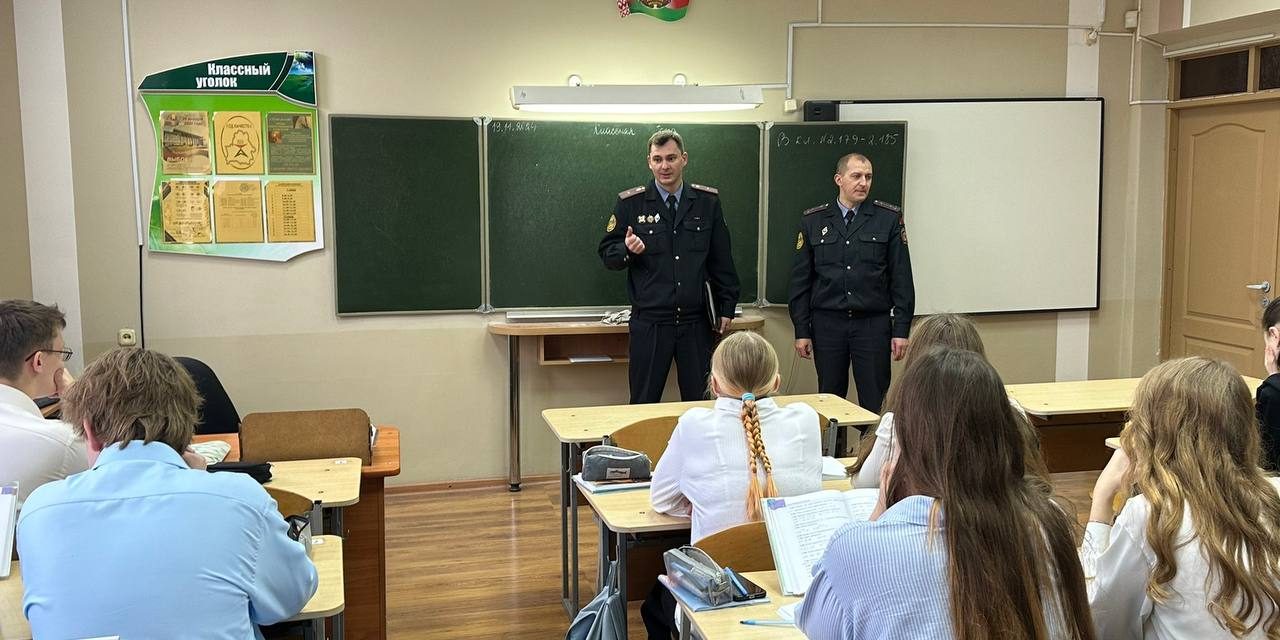 Командир взвода батальона милиции (Центрального района г.Гомеля) отдела Департамента охраны Министерства внутренних дел, старший лейтенант милиции Мурашко Е. Н. и майор милиции Солодкий К.Н. рассказали ребятам об опасности киберпреступлений.
