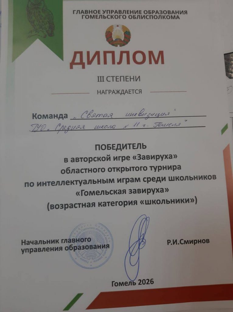 Поздравляем с победой — диплом 3й степени в авторской игре «ЗАВИРУХА» — нашу старшую команду и с отличной игрой наших подрастающих интеллектуалов!