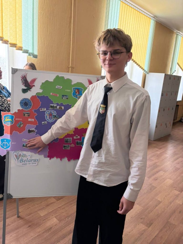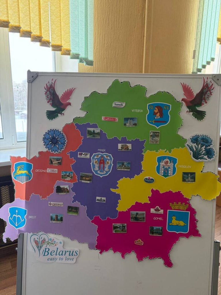 Старшие ребята тоже не скучали на переменах! Они распределили на магнитной карте Беларуси достопримечательности и памятные места по областям страны, а после поделились своими знаниями о каждом из них.