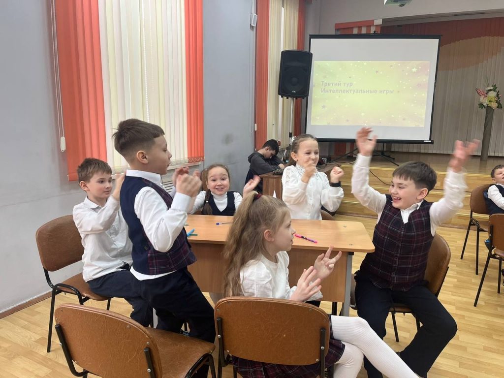 В стенах нашей школы кипели нешуточные интеллектуальные страсти! В актовом зале прошёл школьный тур игры ДетКИ для учащихся 3-х классов! С блестящим результатом победила команда «Белые фигуры»! Но на этом всё только начинается! Команду-победительницу ждёт серьёзное испытание — участие в районном этапе ОБЛАСТНОГО ИНТЕЛЛЕКТУАЛЬНОГО КОНКУРСА «ДЕТКИ», который состоится 5 февраля. Ребята — в активной стадии подготовки!