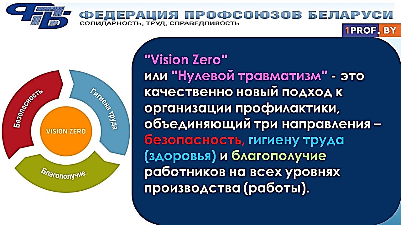 Это комплекс профилактических мероприятий, основанных на международной концепции «Vision Zero» направлен не только на охрану труда сотрудников, но и на формирование у учащихся культуры безопасного поведения.